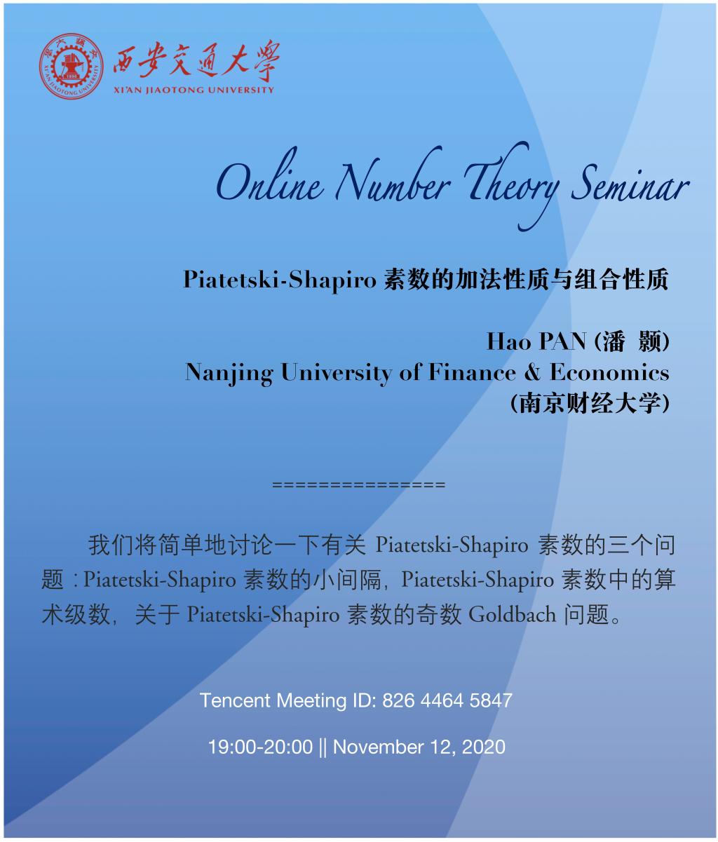 【数论讨论班】南京财经制服做爱 潘颢教授 (2020.11.12)