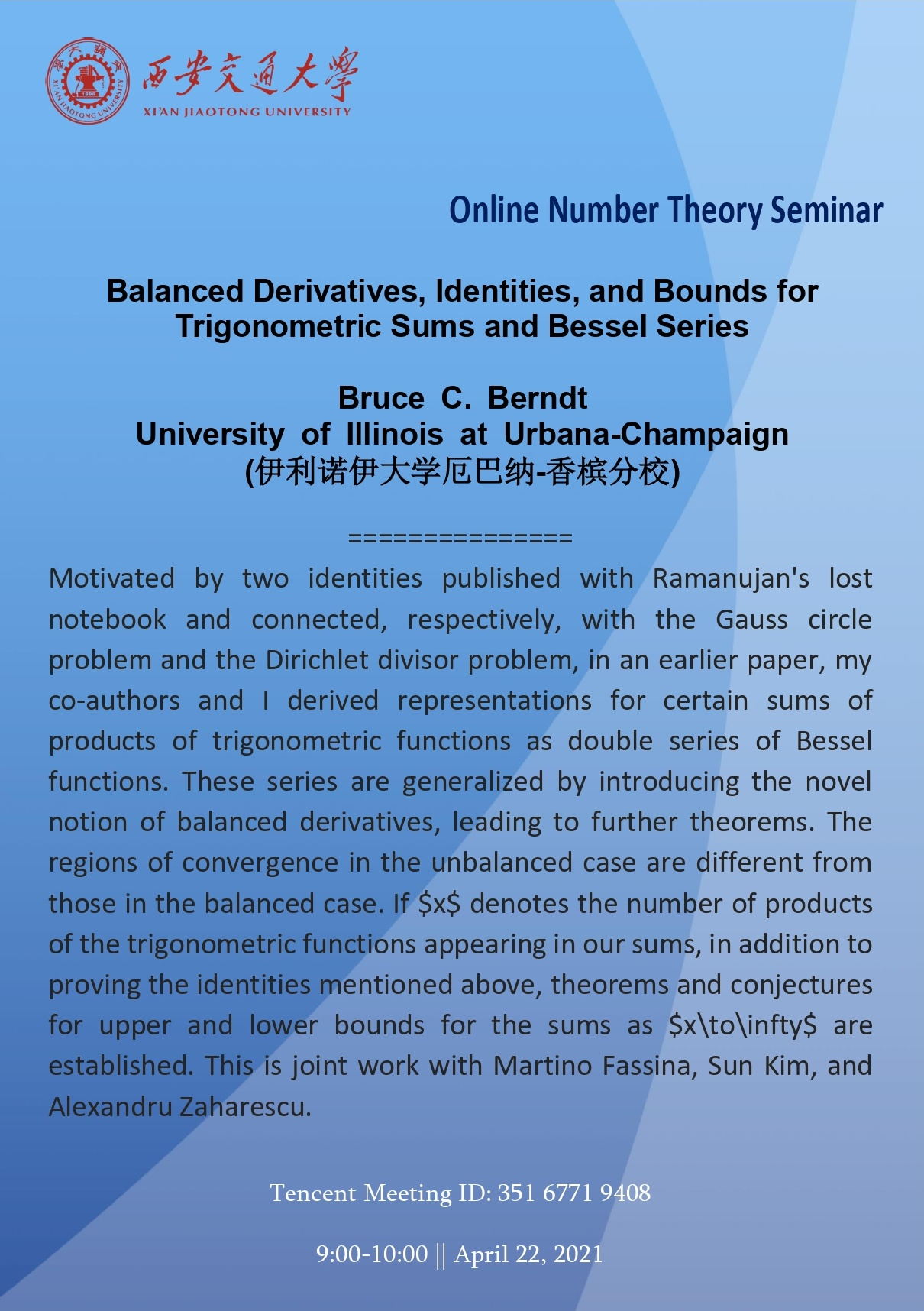 伊利诺伊制服做爱 厄巴纳-香槟分校Bruce C. Berndt学术报告通知