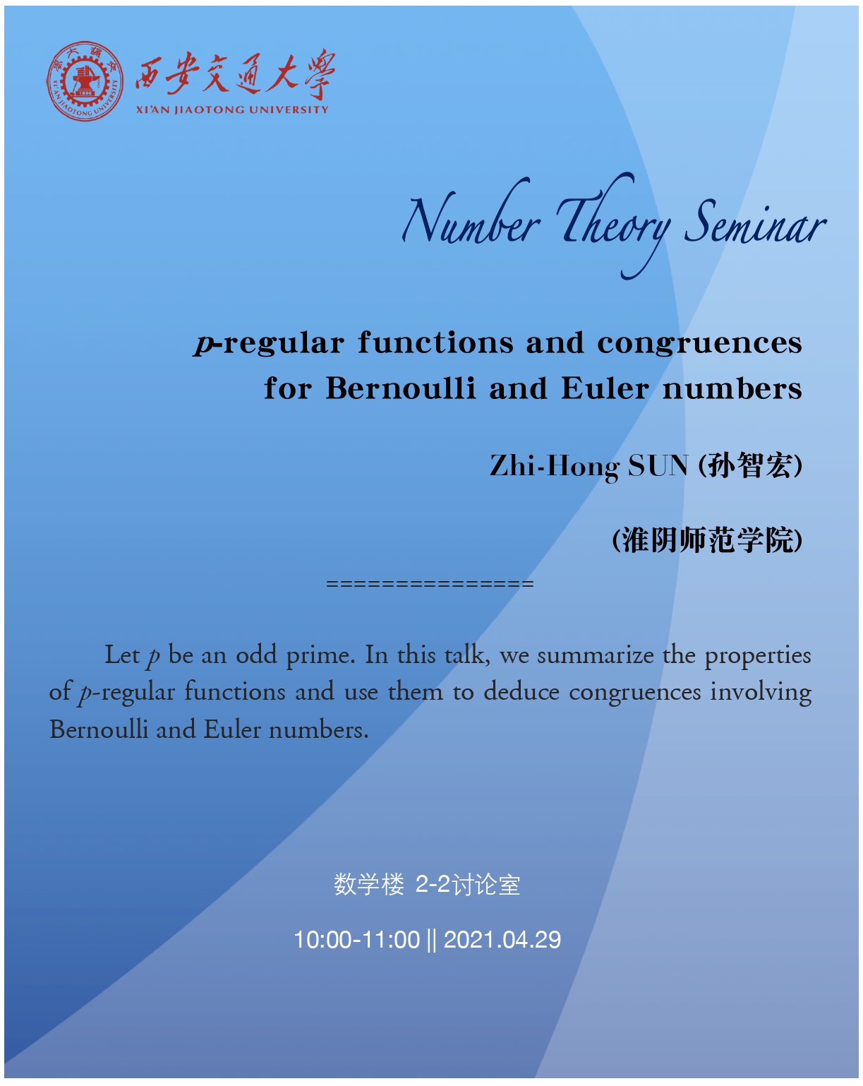 【数论讨论班】淮阴师范制服做爱 孙智宏教授 (2021.04.29)