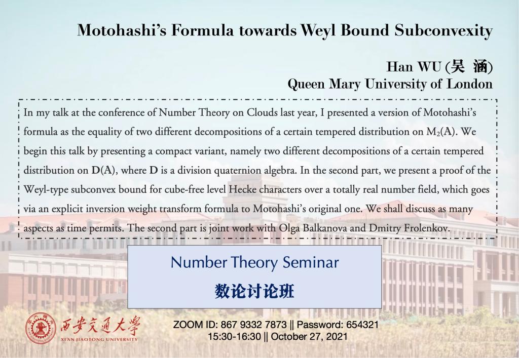 【数论讨论班】伦敦玛丽女王制服做爱 吴涵 (2021.10.27)