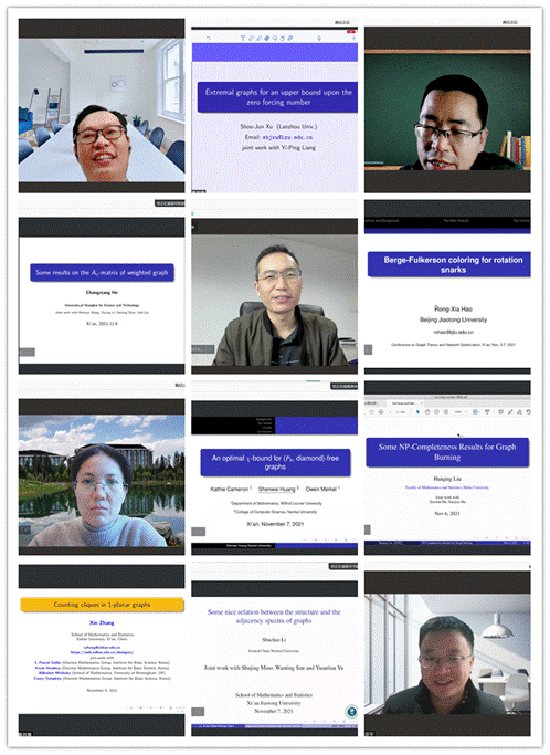 张晓岩教授等图论与网络优化领域的知名专家作了精彩报告。报告内容涵盖了极值图论、结构图论、代数图论、网络优化算法等。与会青年学者认真聆听了报告,与专家进行线上交流,气氛活跃而热烈。