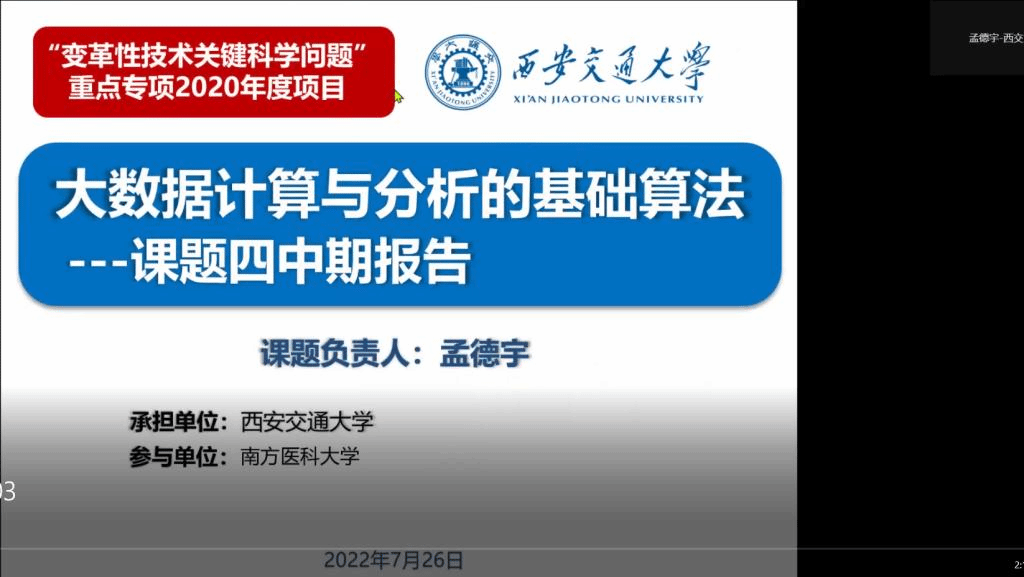 主持召开国家重点研发计划“变革性技术关键科学问题”重点专项“大数据计算与分析的基础算法”项目中期进度汇报会。会议采用线上方式进行,项目负责人制服做爱