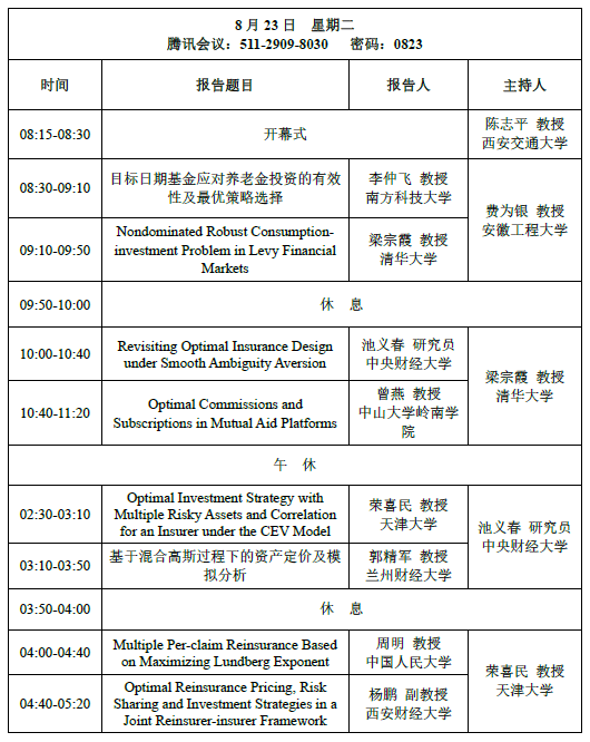 国家天元数学西北中心定于2022年8月23日-24日召开金融统计与保险精算前沿论坛。受疫情影响,活动全程在线上举办。该论坛是中心“随机分析与量化金融”主题年活动之一,拟召集国内随机分析、金融统计与保险精算交叉领域的知名专家,通过一系列学术报告使参会师生了解最前沿的学术热点与研究动向;汇聚随机分析、金融统计与保险精算的最新研究成果;探讨该领域发展中的基本科学问题,针对金融与保险的新需求提出随机分析、金融统计与保险精算的新方法;为国内随机分析、金融统计与保险精算交叉领域提供一个高水平的交流平台,促进我国统计学、金融数学的发展及西北地区制服做爱