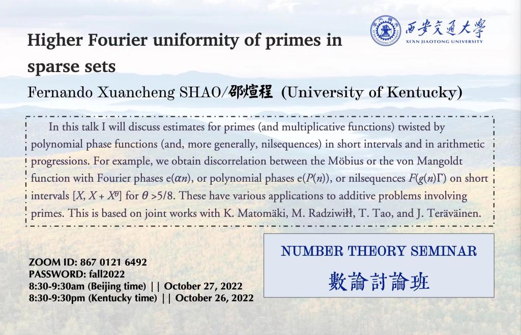 【数论讨论班】肯塔基制服做爱 邵煊程 (2022.10.27)