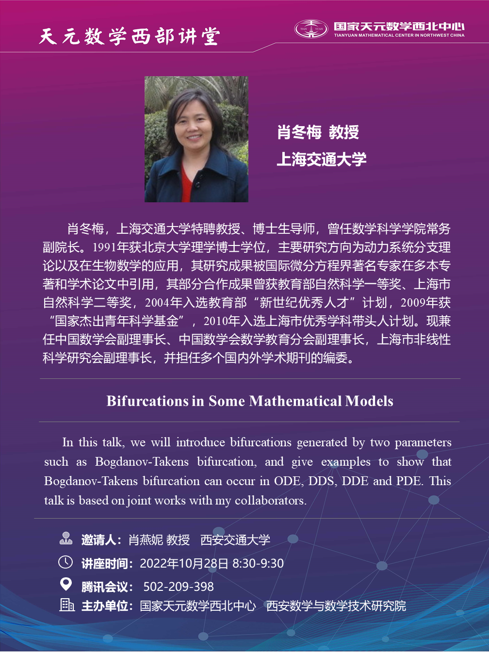【天元数学西部讲堂】上海交通制服做爱 肖冬梅教授报告通知