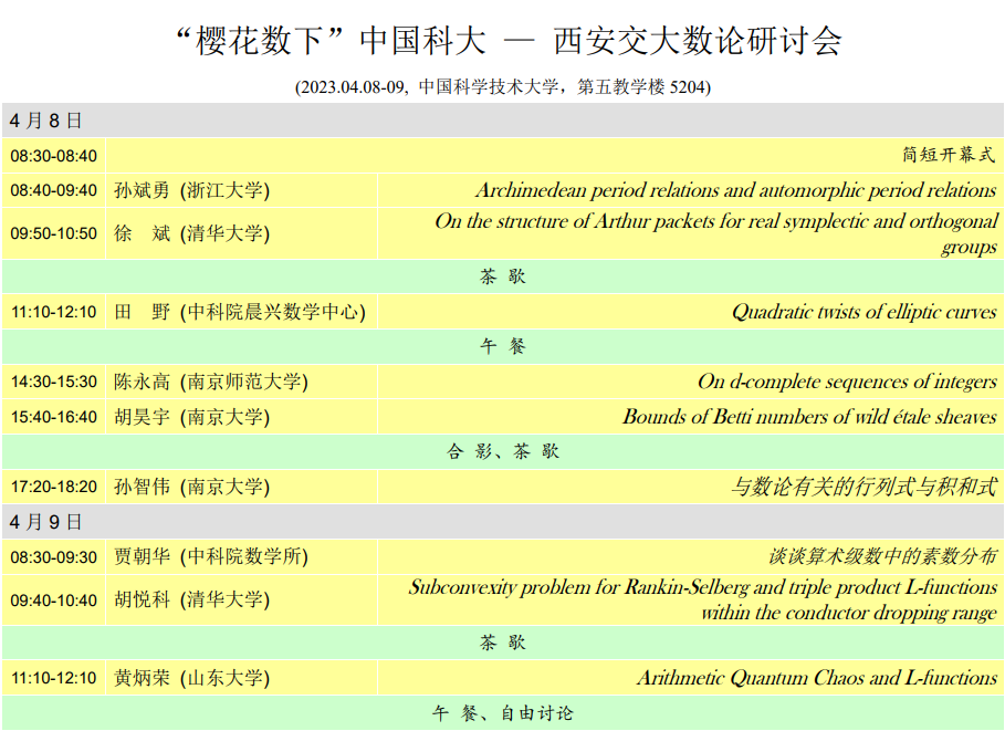 中国科大-西安交大数论研讨会(2023年4月8日-9日)
