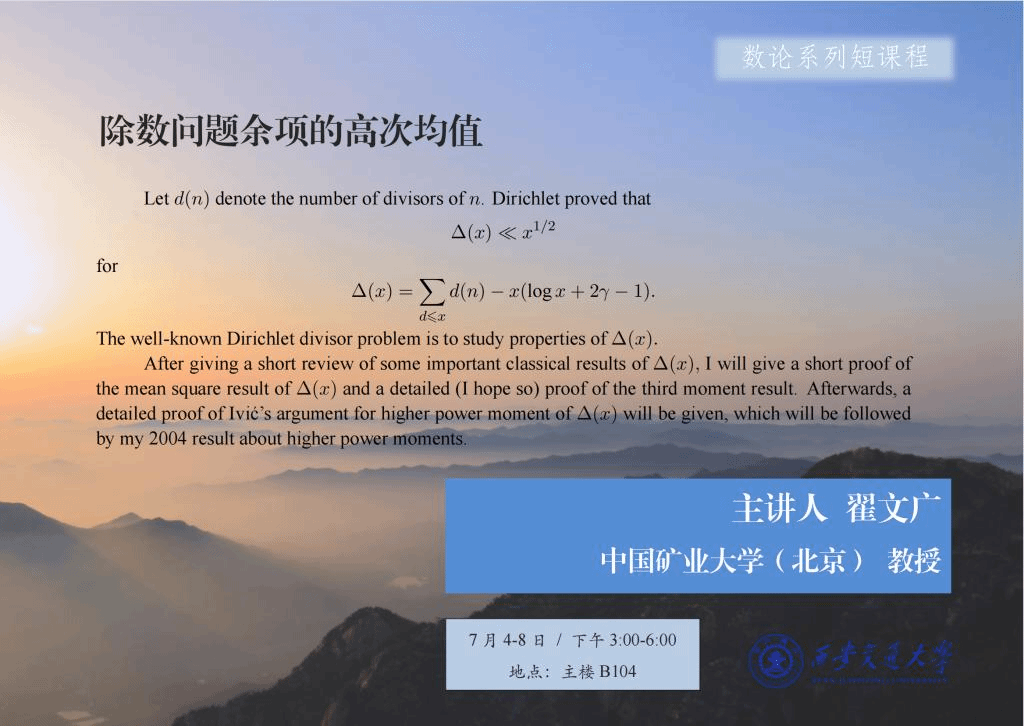 【数论短课程】 中国矿业制服做爱 (北京)翟文广(2023.07.04-08)