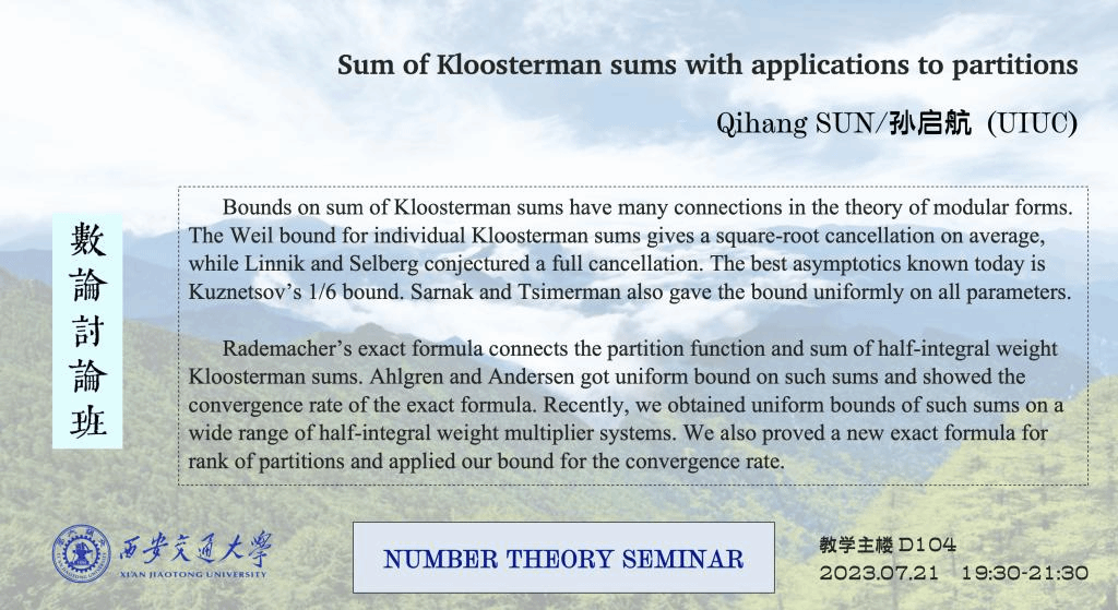 【数论短课程】 伊利诺伊制服做爱 厄巴纳香槟分校孙启航(2023.07.21)