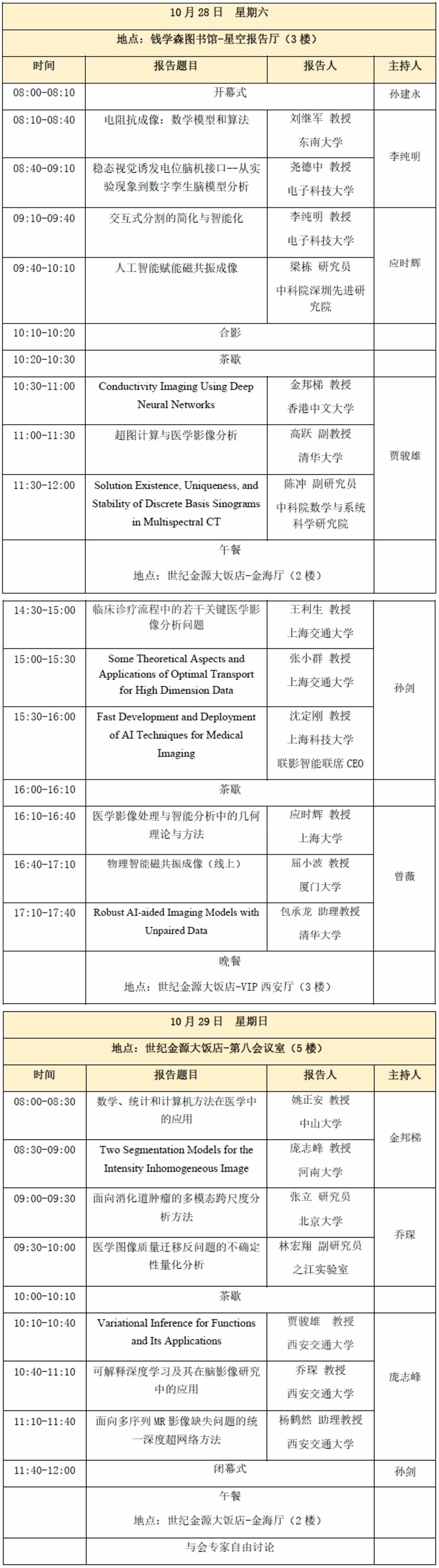 承办。此次研讨会聚焦“医学成像与影像分析的数学理论与方法”,讨论其在MR/CT/多模态医学成像与影像分析领域中的应用,目的是促进数学反问题、人工智能、机器学习、物理成像等理论方法与医学影像领域的交叉与融合。