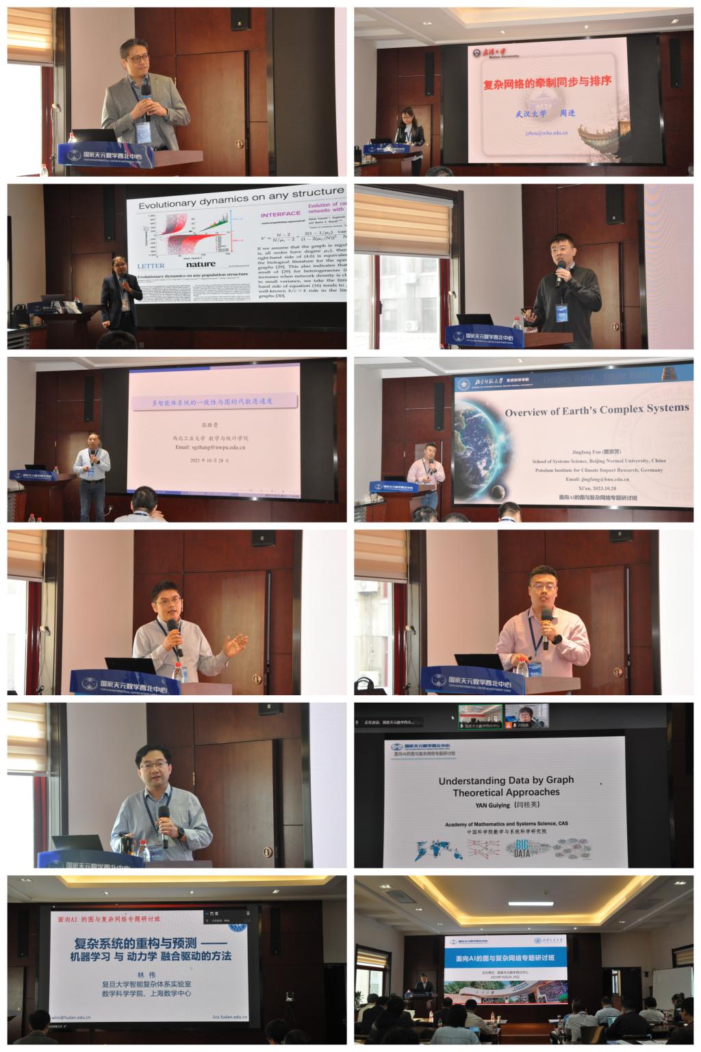 黄子罡教授、王平辉教授。报告内容精炼丰富、深入浅出,理论与应用并重。与会学者们积极讨论互动,深入研讨了复杂网络动力系统、概率图模型、因果关系表征、图论与图计算等主题,共同探索这些方法在医疗健康、电力系统、国防、社交网络等重要领域中的前沿应用。
