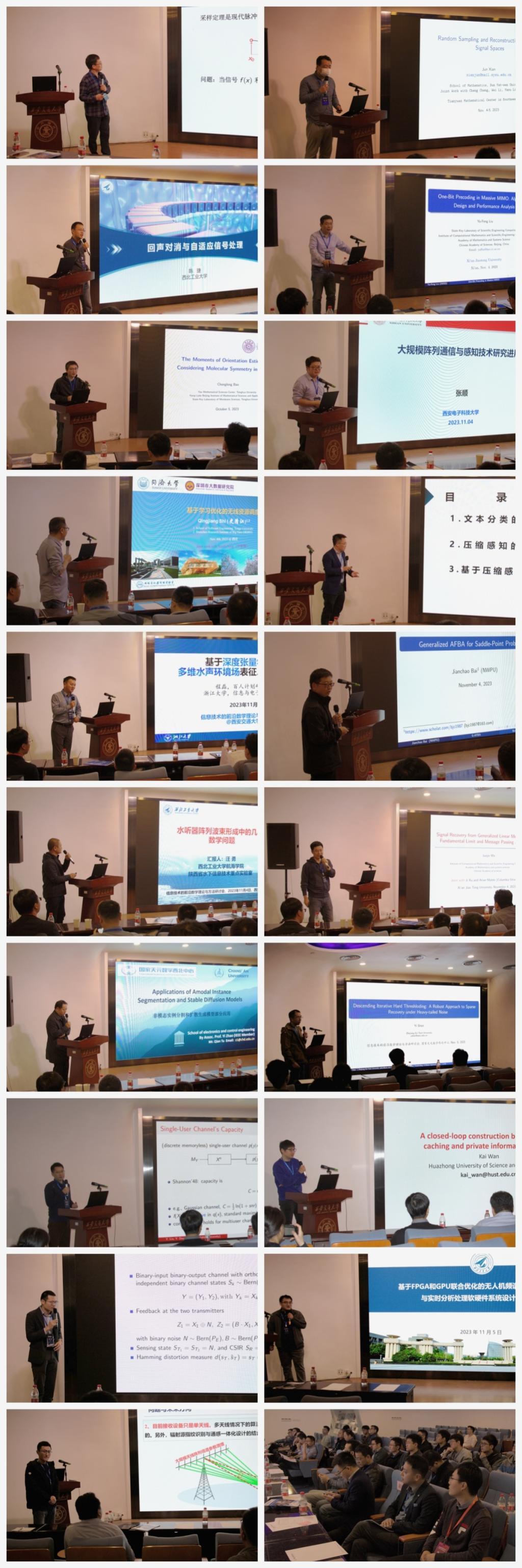 杨在教授、薛江教授和魏志强教授以及与会专家共同主持。会议期间,与会专家聚焦信息技术的前沿数学理论与方法,讨论了采样定理、非凸分布式分解优化及其在信号处理中的应用、大规模MIMO中的1-bit预编码技术、大规模阵列通信与感知技术、基于学习优化的无线资源调度方法、广播信道容量界的数值计算、通信感知一体化系统的信息论性能限、机器视觉中语义非模态实例分割和扩散生成模型的关键应用等重要的理论及信息技术,以促进数学思想、通信理论和人工智能的融合。会议邀请了19位相关领域专家依次展开讲座报告,分别为南开制服做爱