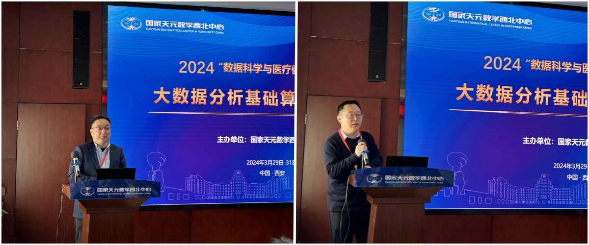 院长孙建永教授,统计系主任孟德宇教授应邀出席论坛开幕式。徐院士到会鼓舞大家要围绕国家在数据科学与医疗健康领域的重大需求,探讨大数据时代下基础方法的变革性特点,并结合大模型等新型人工智能工具,深入探讨未来发展趋势,为大数据应用提供科学和技术支撑。孙院长热烈欢迎远道而来的与会专家学者,他介绍了国家天元数学西北中心的“双中心”定位与“双目标”建设思路,希望通过开展主题活动年等前沿交流活动,促进数学工作者与其他学科领域学者间的深度合作交流。开幕式由孟德宇教授主持。