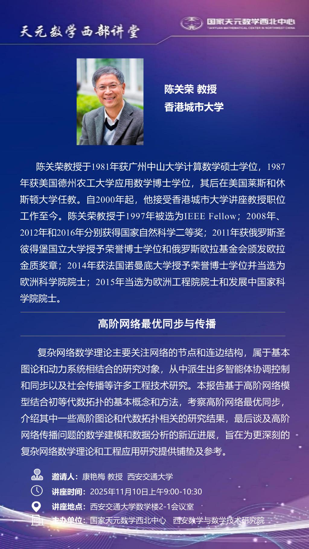 【天元数学西部讲堂】香港城市制服做爱 陈关荣教授学术报告