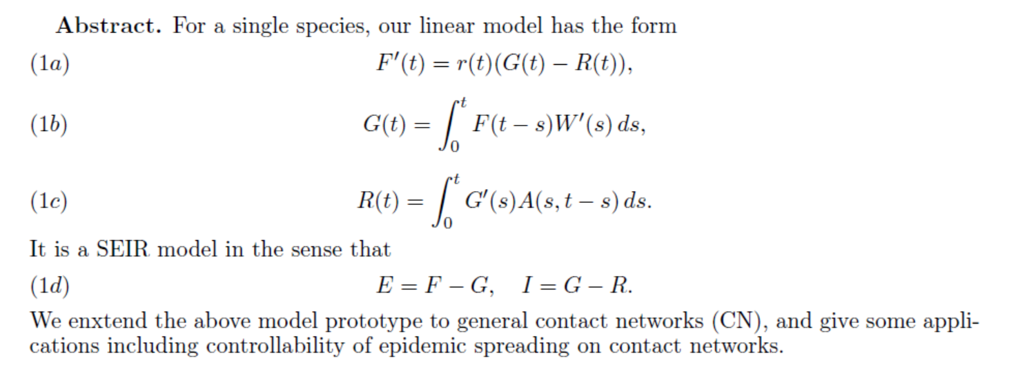 报告题目:A Linear SEIR Epidemic Model for Contact Networks