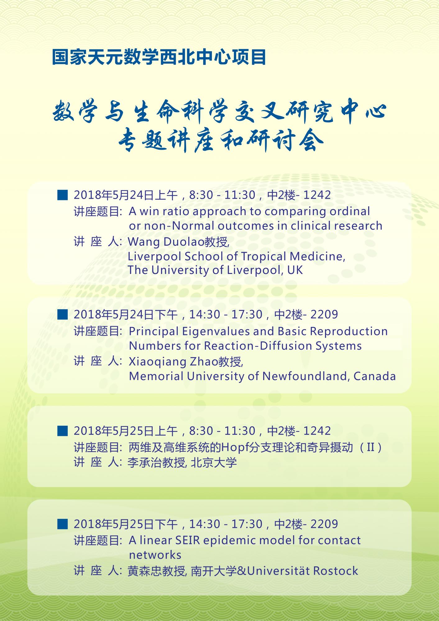 赵晓强教授是国际应用动力系统和生物数学领域中最活跃的学者之一。他关于单调动力学、一致持久性、行波解和渐进传播速度、基本再生数的理论及应用方面的一系列工作已经成为了相关研究领域的经典文献。迄今为止,赵晓强教授在“Comm. Pure Appl. Math.、 J. Eur. Math. Soc.、 J. Reine Angew. Math.、 J. Math. Pures Appl.、 SIAM J. Math. Anal.、 SIAM J. Appl. Math.、J. Nonlinear Science、J. Functional Anal.、 J. Differential Equations、J. Math. Biology、Bull. Math. Biology”等国际著名期刊上发表学术论文100余篇,并著有 “Dynamical Systems in Population Biology(Springer-Verlag)”。此外,赵教授目前担任加拿大数学会主办杂志“Canadian Mathematical Bulletin”的主编和另外两个国际动力系统期刊的编委。