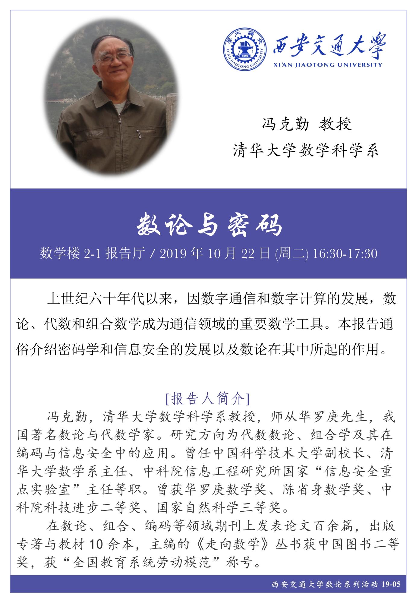 【数论系列活动19-05】清华制服做爱 冯克勤教授学术报告通知