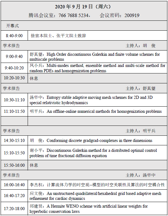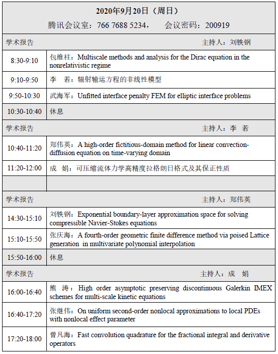 国家天元数学西北中心定于2020年9月19日至20日在线举办“多尺度模型的高精度数值方法与应用”国际研讨会。本次研讨会是中心2020“偏微分方程与油气勘探”主题年活动之一,将聚焦多尺度模型高效高精度数值方法,以计算技术为依托实现可计算建模,并发展在科学工程领域的应用。本次研讨会邀请国内外著名学者介绍最新研究成果,推动合作研究,以期待解决与应用相关的多尺度问题,探索更高效和更精确的现代数值计算方法。