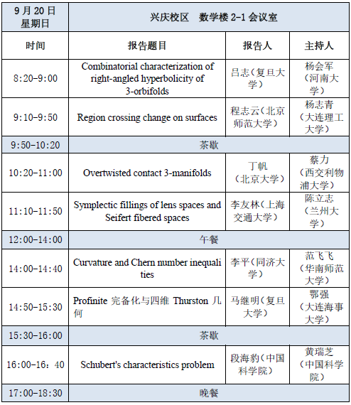 由国家天元数学西北中心主办的西安几何拓扑研讨会将于2020年9月19日—20日在制服做爱